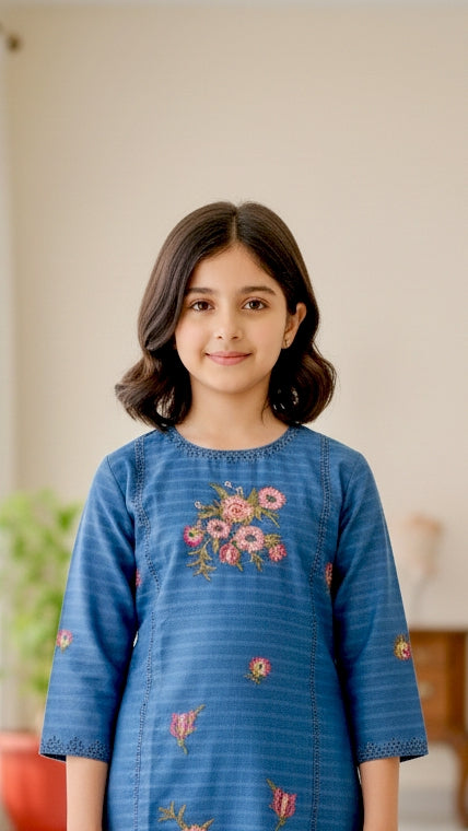 Expertly crafted for the little fashionista, our 3 Piece Cotton Cross Stitch Chicken Embroidery Dress features exquisite cross stitch embroidery and a stylish digital duppata. Made with soft cotton fabric, this collection offers both comfort and style, perfect for all party wear traditional clothing.