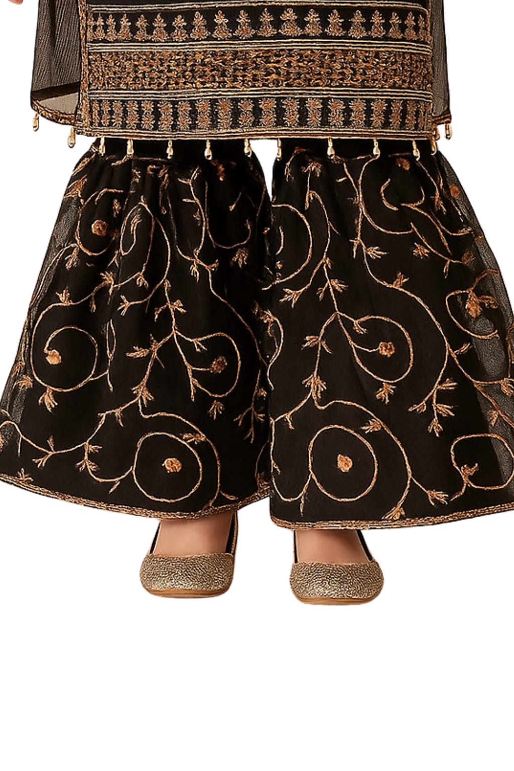 3 Piece Embroidery Chiffon Festive Gharara Suit.