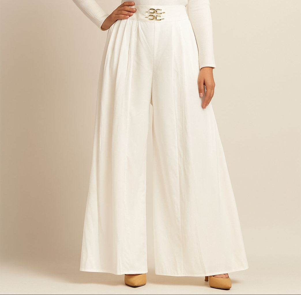 This loose style plazo in basic white color can be paired with any top or shirt, creating a versatile western and pret look for baby girls and teens. Its fit flatters all body types, adding a fashionable touch to any outfit. A must-have for any wardrobe.