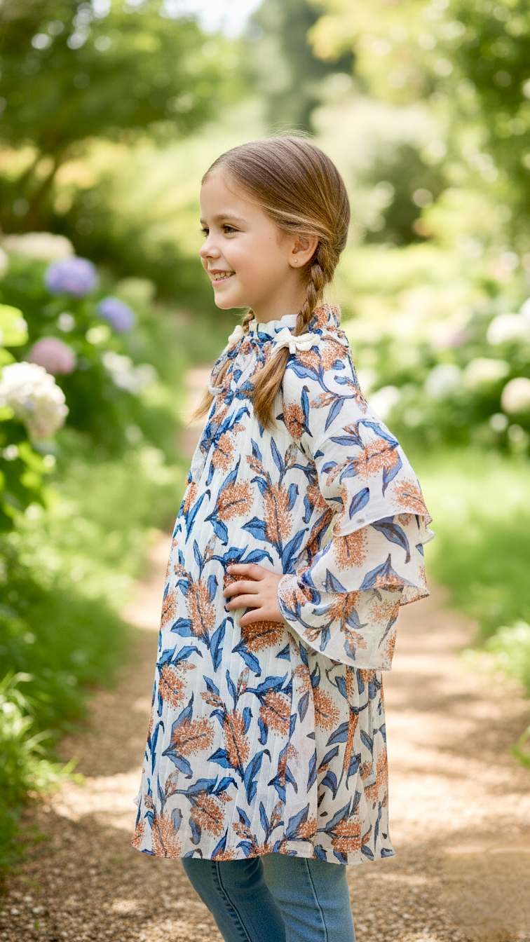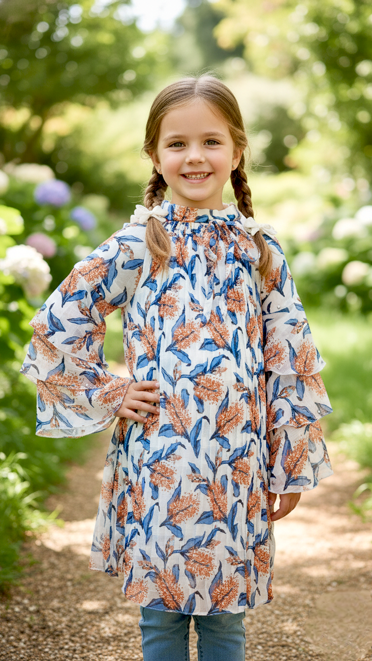 Introducing our Stylish Top, made with imported Georgette fabric. This beautiful western wear top features a stylish design and comes with an attached inner for added convenience. Perfect for your little fashionista, it's both elegant and comfortable. Elevate your baby girl's wardrobe with this top.