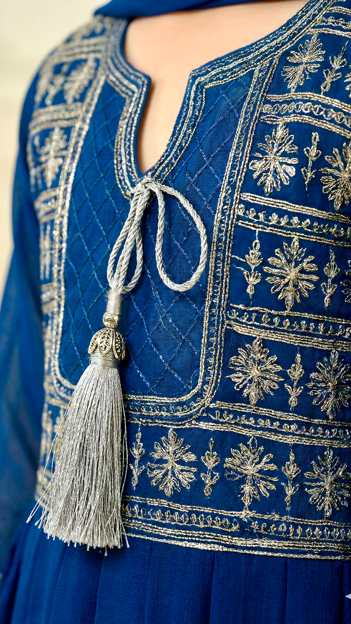 Frock long chiffon frock with attached koti design detailing on sleeves full flared